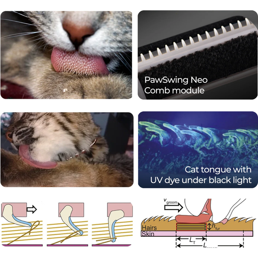 Engineered to mimic the natural grooming motion of a cat’s tongue, PawSwing Pro uses flexible comb modules that compress and smooth the undercoat — just like real feline papillae.